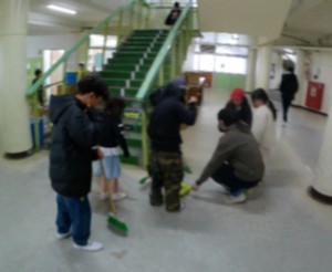 砂ぼこりで汚れていた廊下に気付いた子どもたちが、きれいにしてくれました。