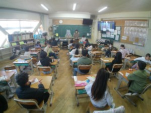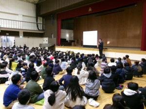 3学期始業式「文部科学省が行う子どもたちへの意見聴取についてと、書き損じはがきの回収について話をしました」