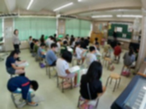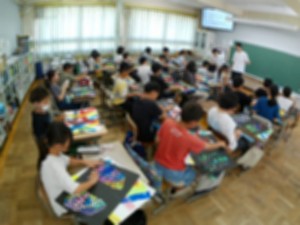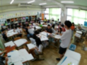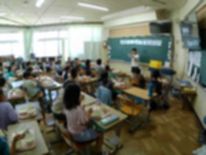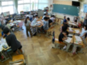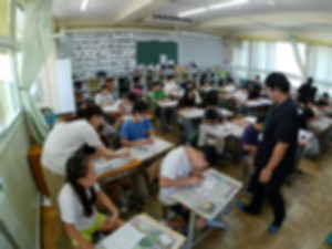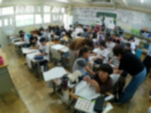 5年生家庭科「ナップザックを作製しています。民生委員の方がお手伝いに来てくださいました。ありがとうございます。」