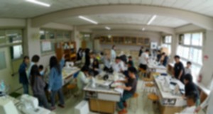 5年生家庭科「ナップザックを製作しています。民生委員の方がお手伝いに来てくださいました。ありがとうございます。」