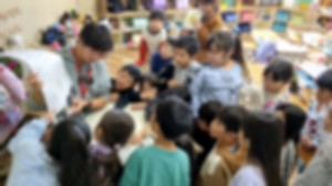 1年生「児童が出品した作品をみんなに紹介しています」