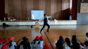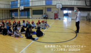 1年生から4年生に、なわとびパフォーマンスの方から出前授業をしていただきました
