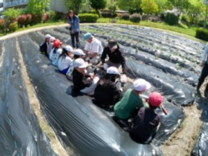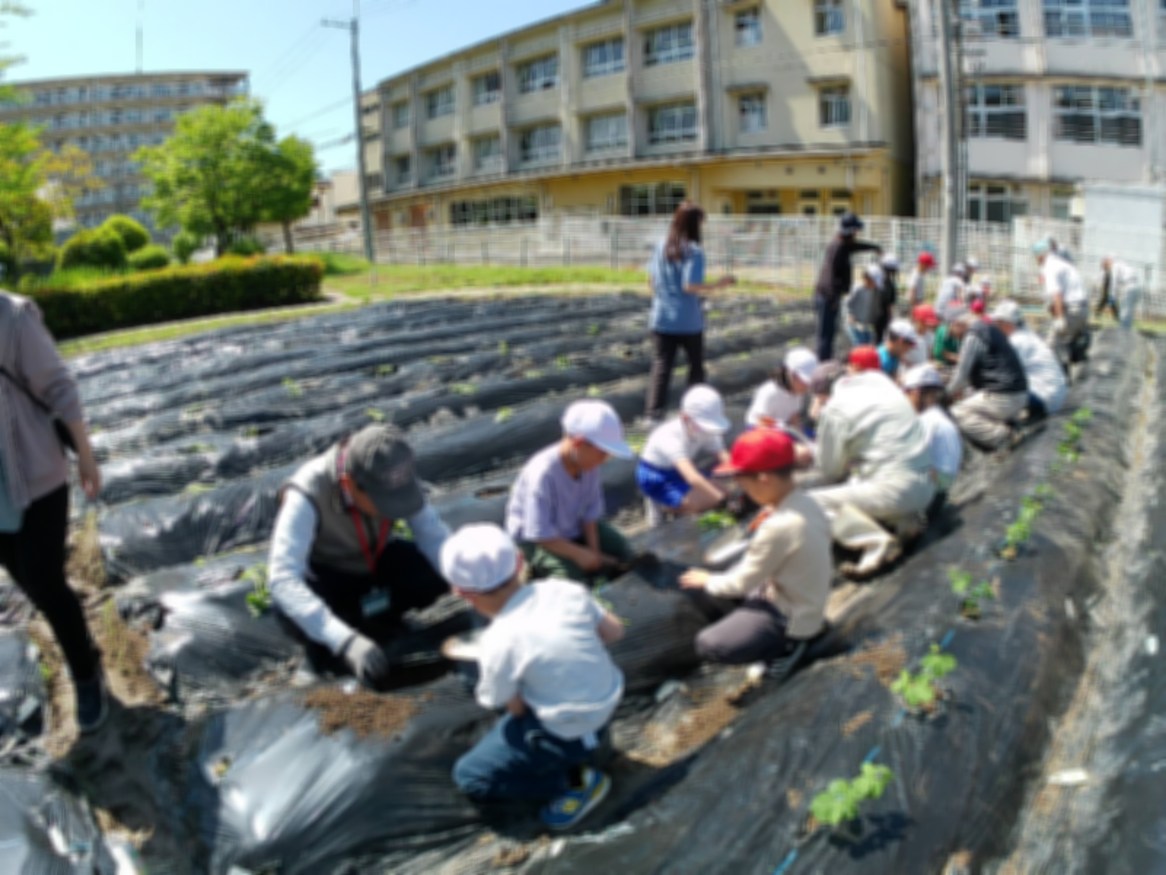 畑の先生が、1年生、2年生、幼稚園、ひまわり学級の野菜の苗の植え付けを手伝ってくださいました。ありがとうございます。