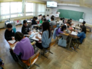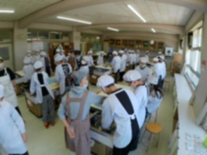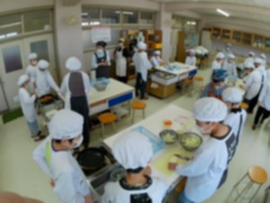 6年生家庭科「野菜炒めの調理実習をしました。民生委員の方がお手伝いにきてくださいました。ありがとうございます」