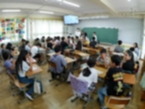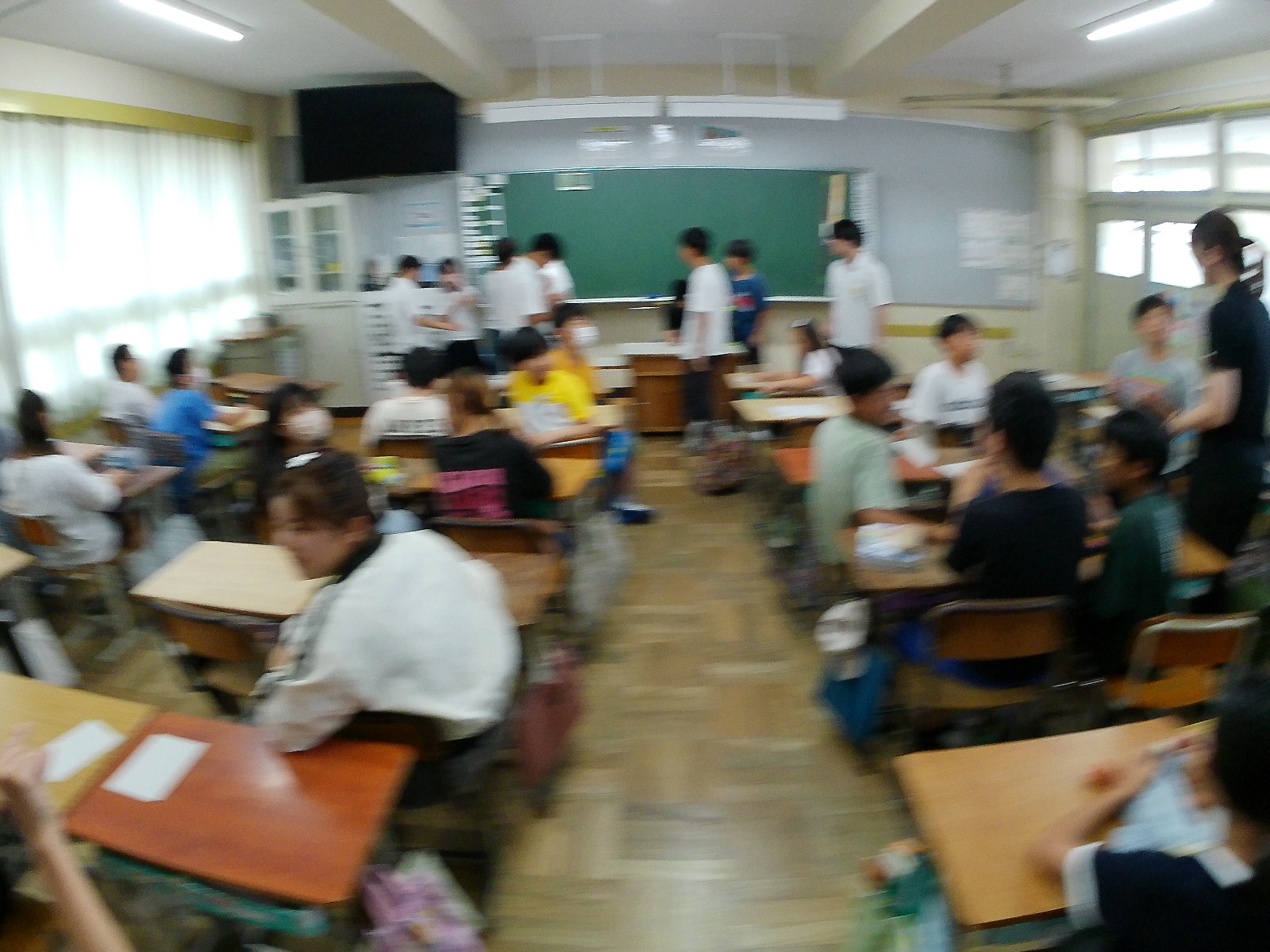 北中学校生徒会の生徒が、中学校の紹介と理科の出前授業をしてくれました。