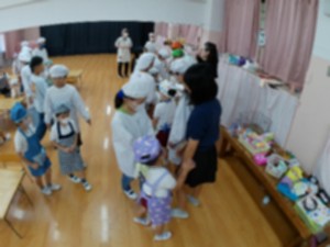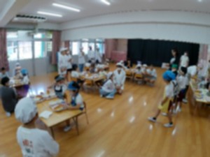 幼稚園の体験給食を、6年生が手伝ってくれました