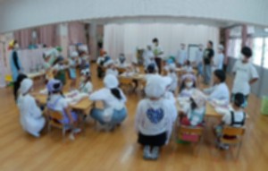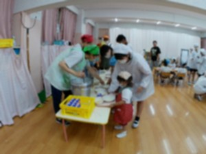 幼稚園の体験給食を、6年生が手伝ってくれました