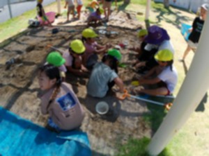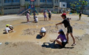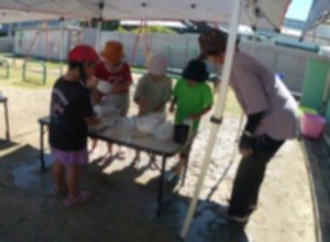 2年生が.幼稚園に来て水遊びを一緒にしました。