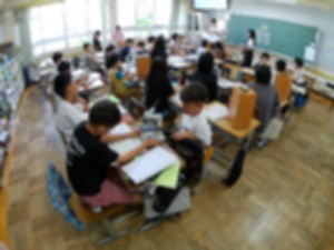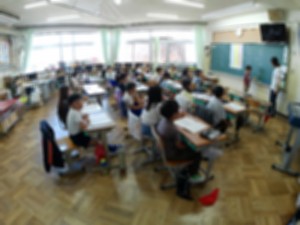 2年生算数「児童が、問題の解き方を前に来て説明しています。その説明をみんなが集中して聴いています」」