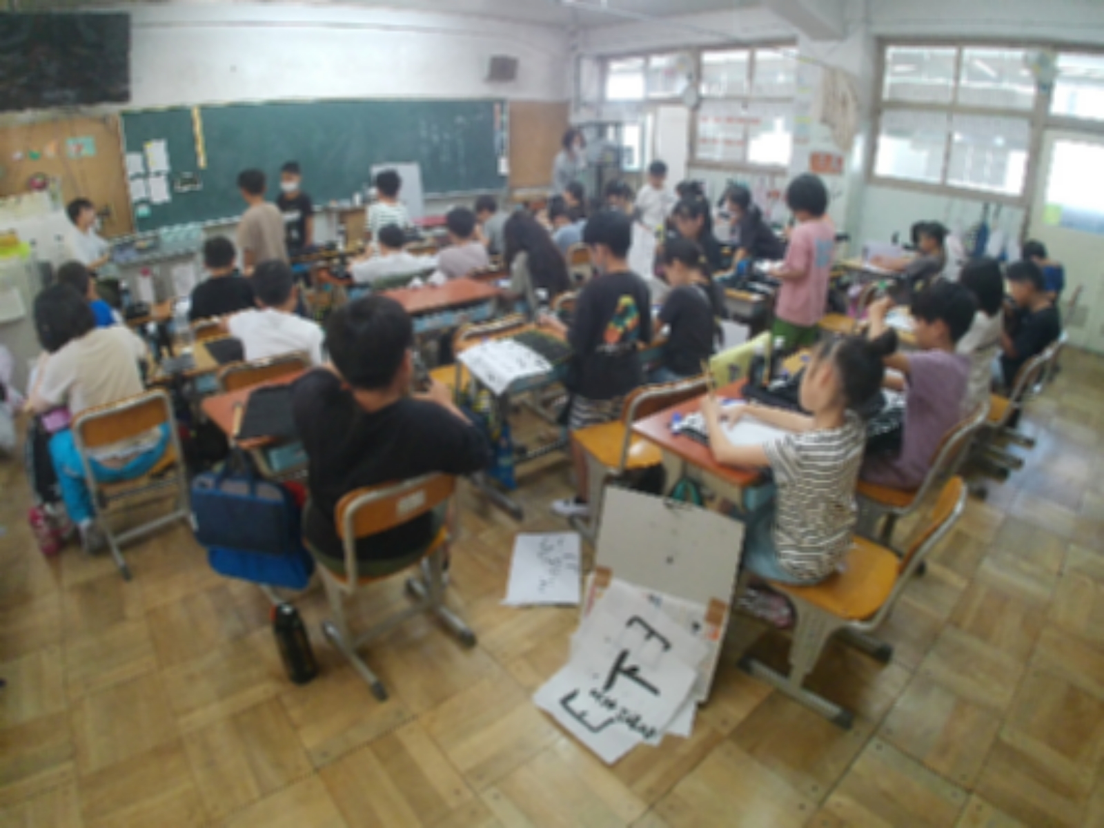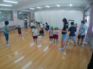 4年生理科「空気鉄砲の実験を園児にも体験してもらいました。勢いよく大きな音とともに飛び出すタマに、園児はびっくりしながら楽しんでいました。4年生のみなさんありがとう」
