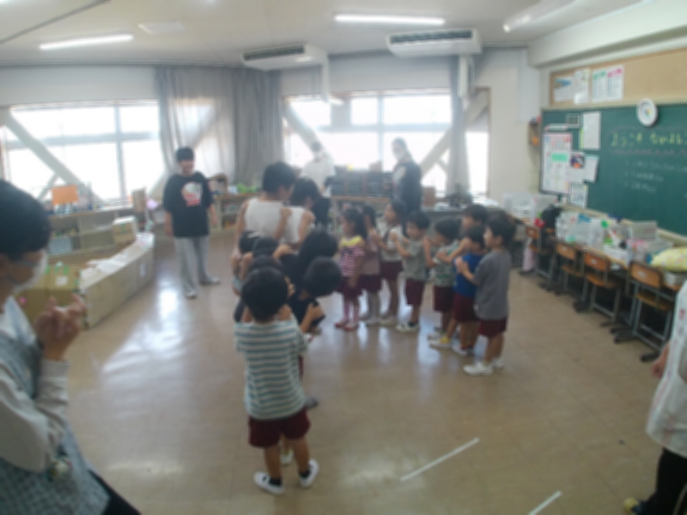 2年生が、園児を招待して自分たちの作った「おもちゃランド」で交流しました。事前に招待状をもらっていた園児たちは、この交流をとても楽しみにしていました。2年生と園児は、お互いに相手意識をもって楽しく関わることが出来ました。