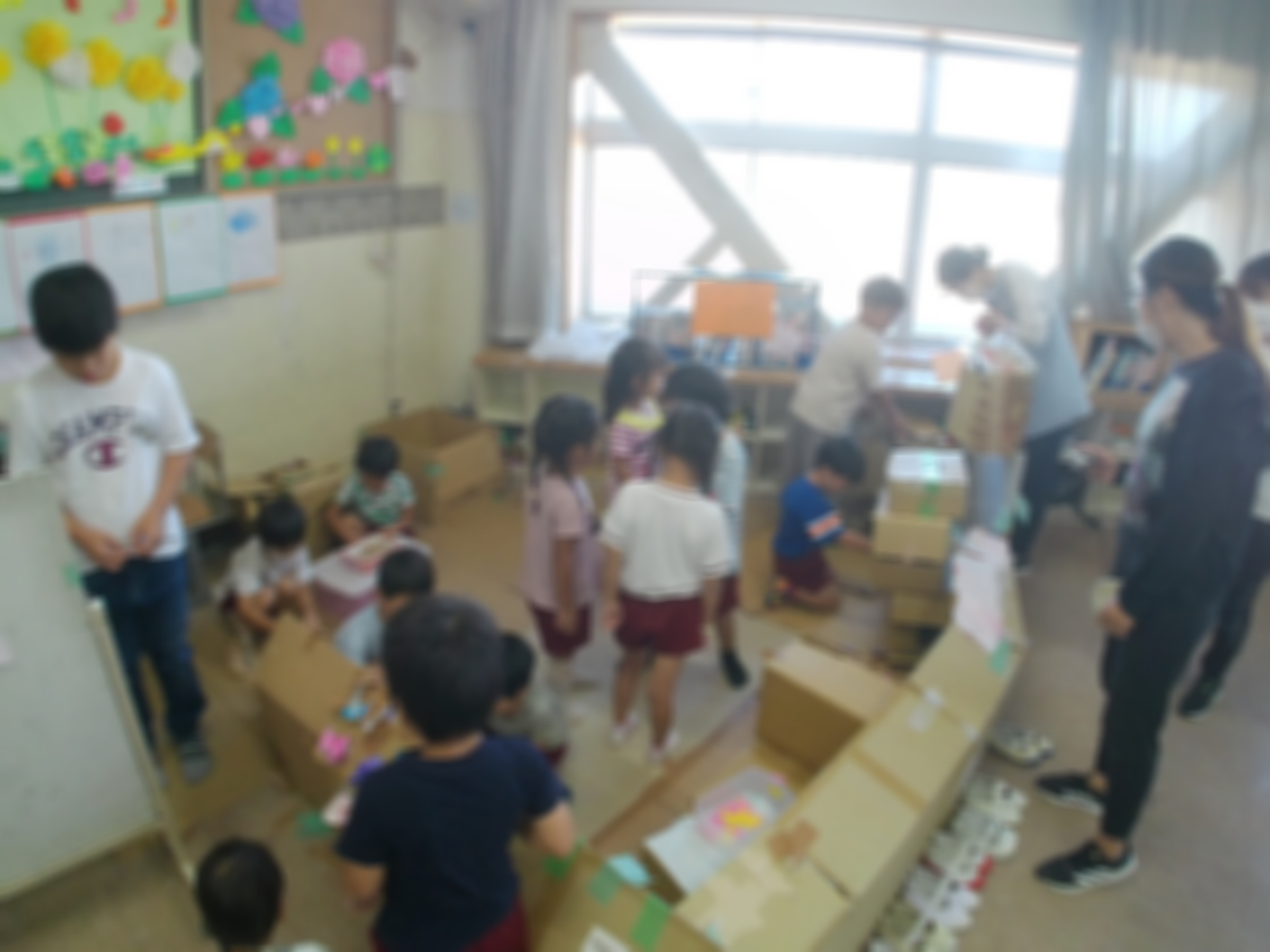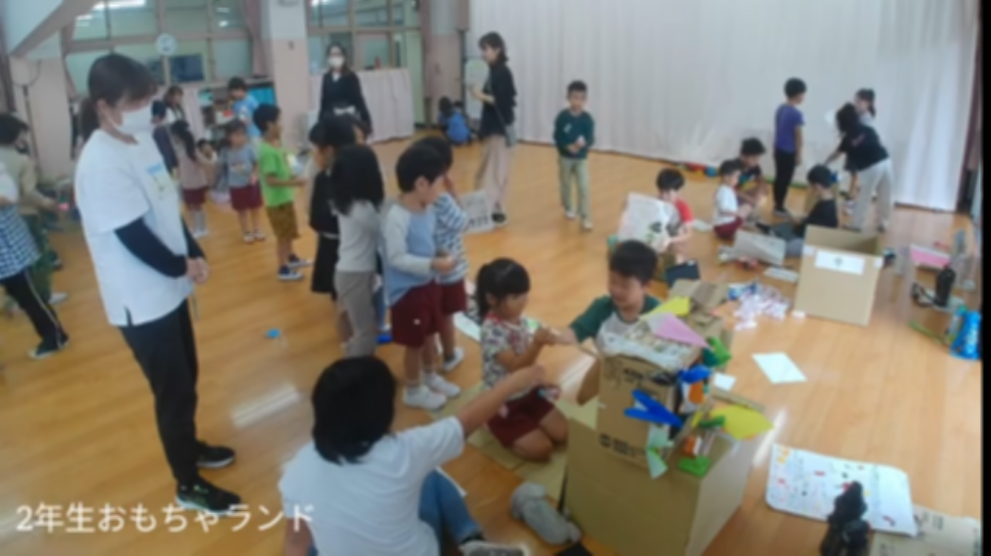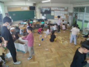2年生「園児に遊んでもらうためのおもちゃランドを準備しています」